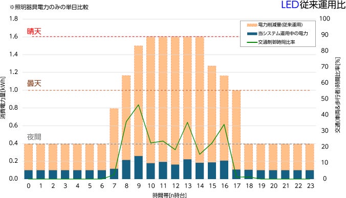 また、朝と昼、夕方に交通のピークがありますが、交通流が間欠的なため一日を通して大きな削減ができています。