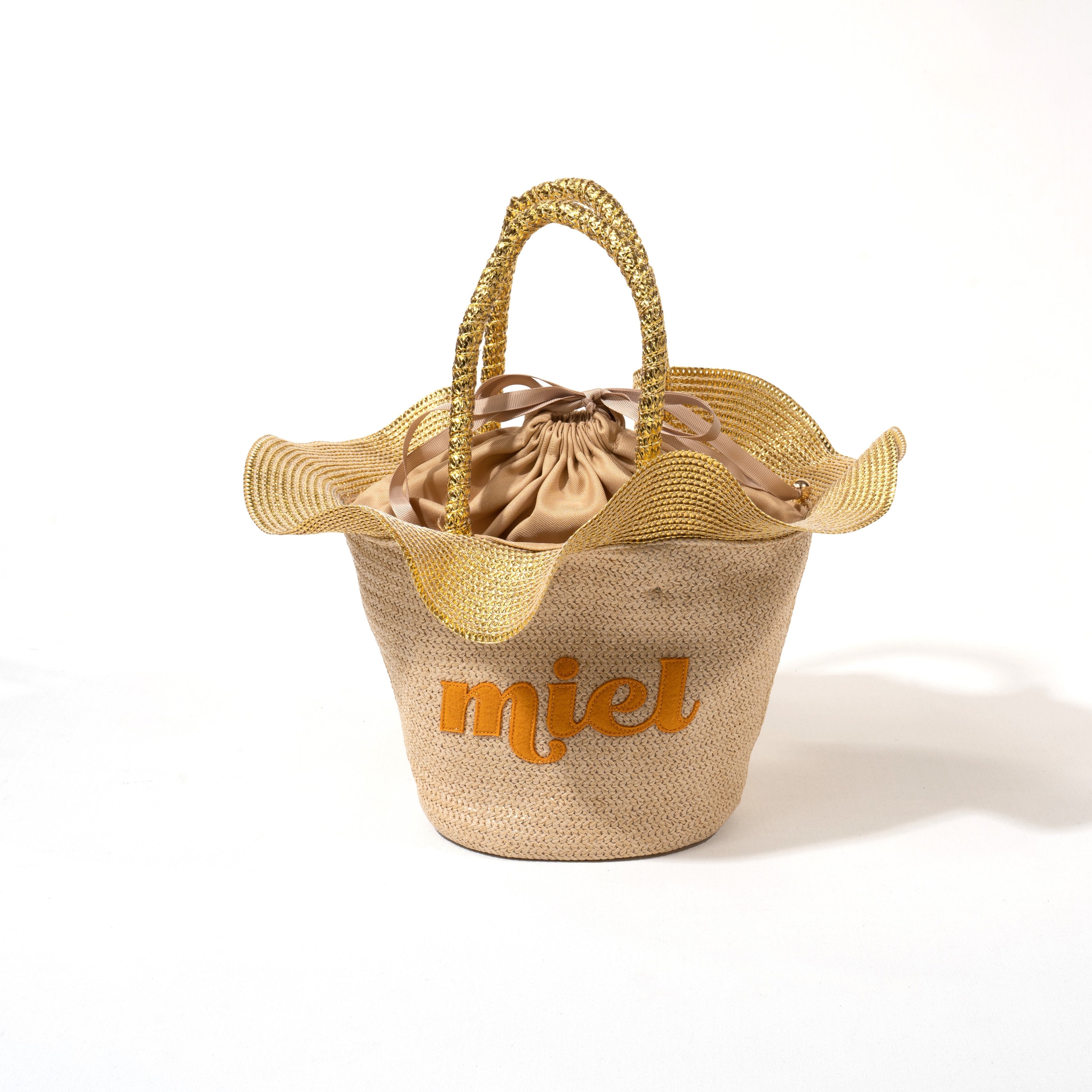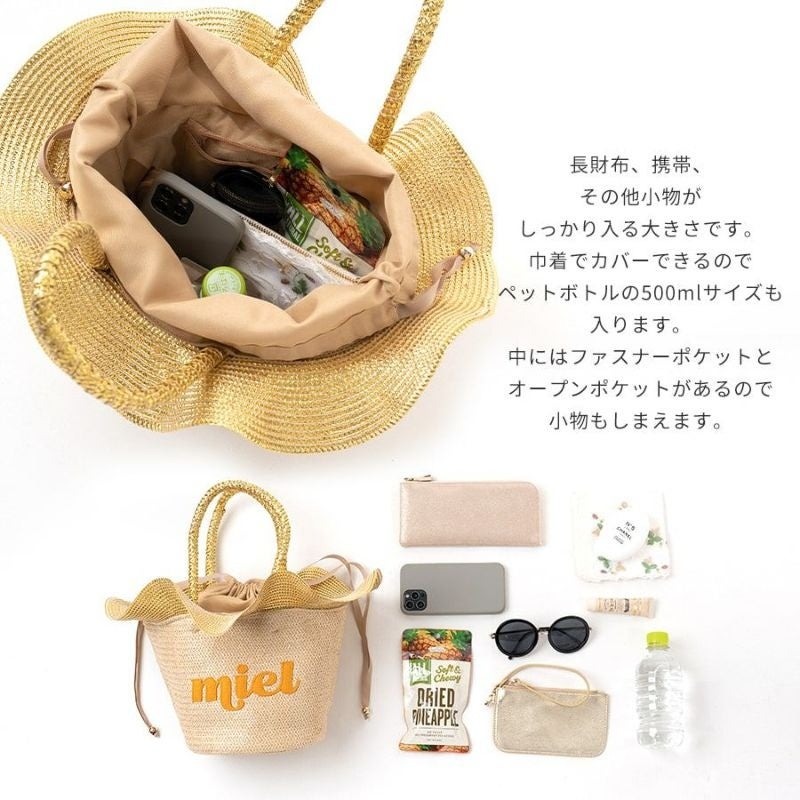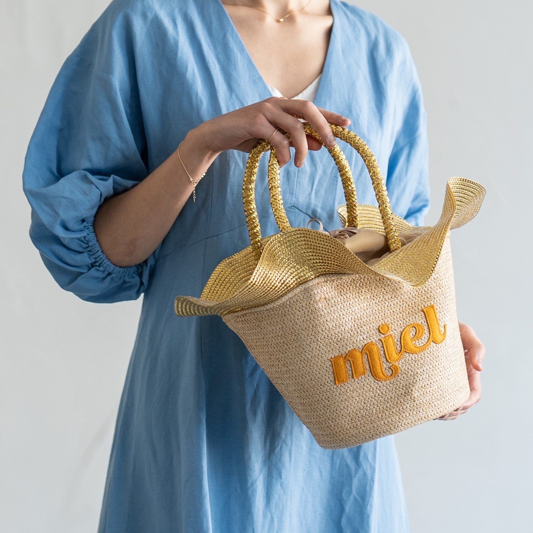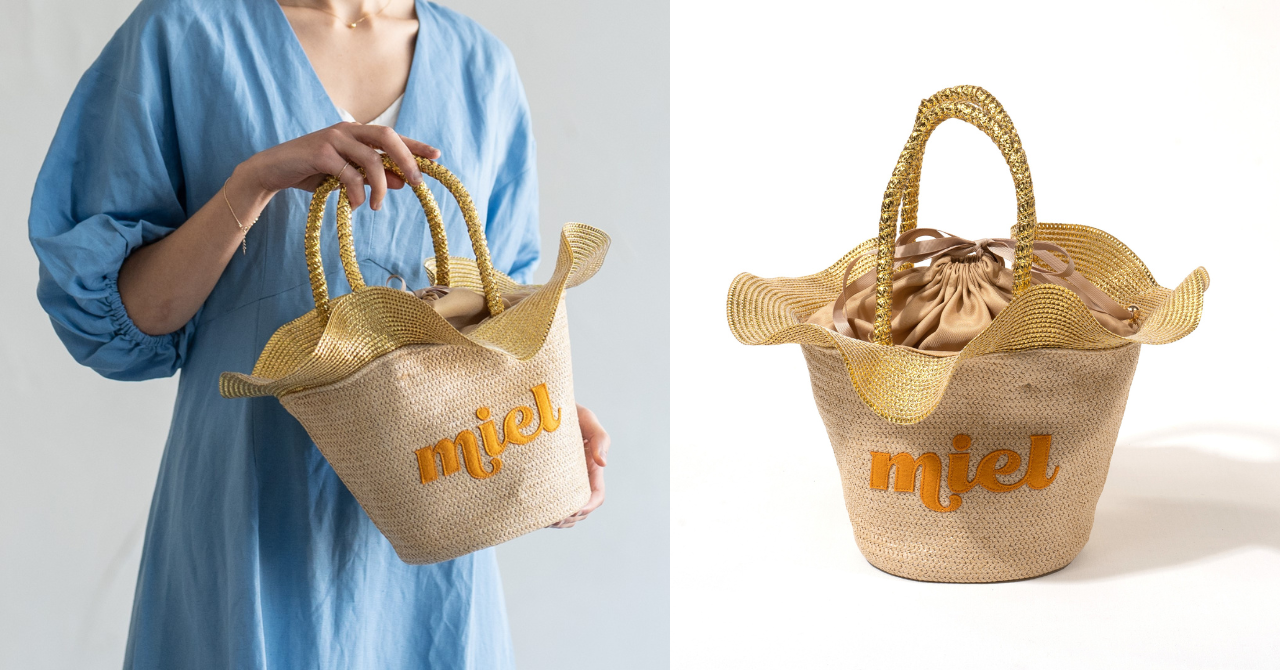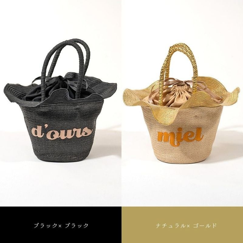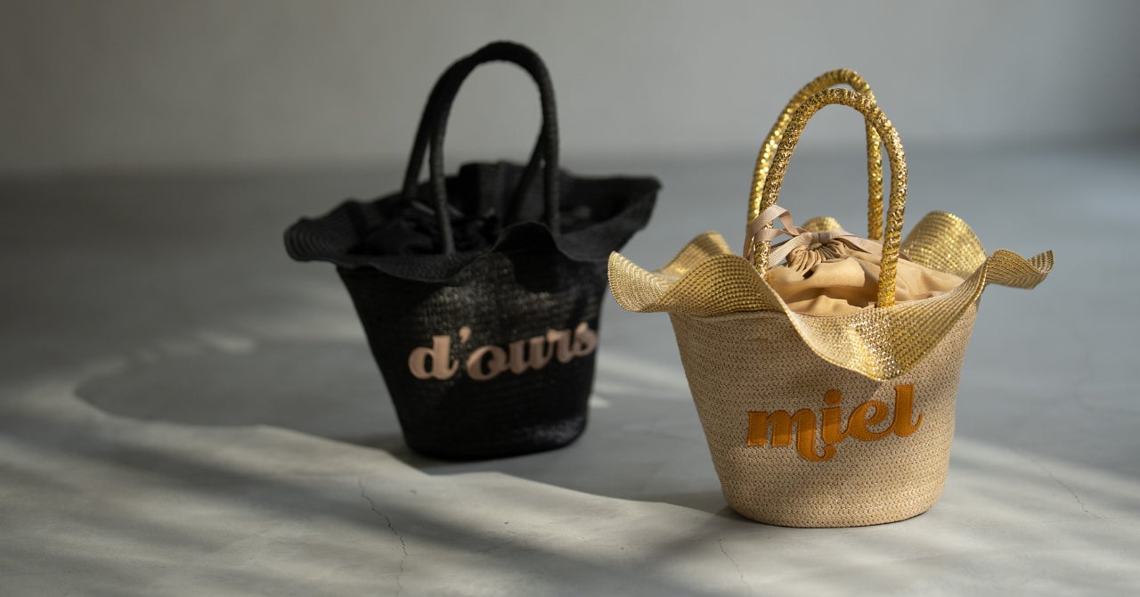 バッグブランドHAYNIから登場した『Oursmiel くまのハチミツ』は、大きなフリルが特徴的なかごバッグ。