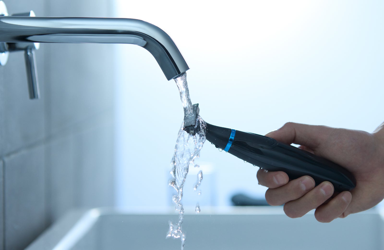 「シェービング、脱毛、スキンケア」の3ステップを続けることで、青ヒゲを解消し清潔感のある美しい肌を目指すことができます。当社が開発した電動シェーバーは、デリケートな肌を持つ男性をターゲットに設計しています。丸みを帯びた刃先が肌に自然と密着し、肌を傷つけない優しい深剃りを実現しました。また、付属ヘッドを変更することで、鼻毛を含む全身のムダ毛を剃ることができます。