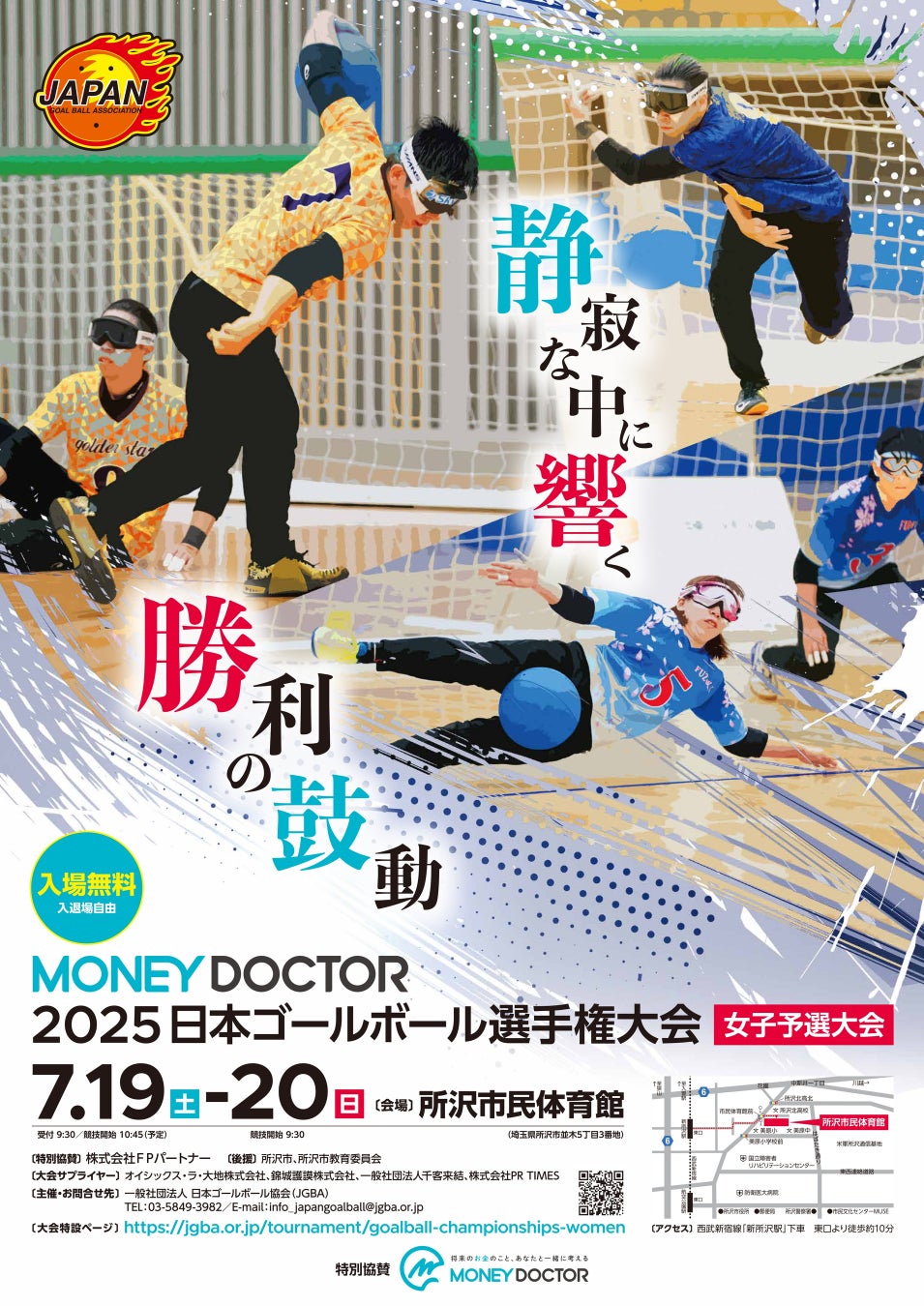 一般社団法人日本ゴールボール協会(以下、JGBA)は、2025年7月19日(土)・20日(日)に所沢市民体育館(埼玉県所沢市)にて「MONEY DOCTOR 2025 日本ゴールボール選手権大会 女子予選大会」を開催いたします。