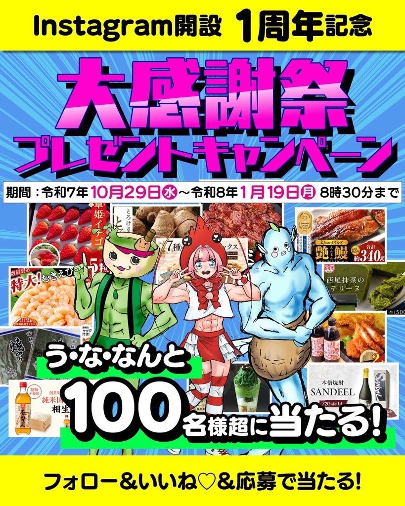 おかげさまで開設から1周年を迎え、このたび、日頃のご支援への感謝を込めて、「インスタグラム開設1周年記念大感謝祭プレゼントキャンペーン」を実施中です。