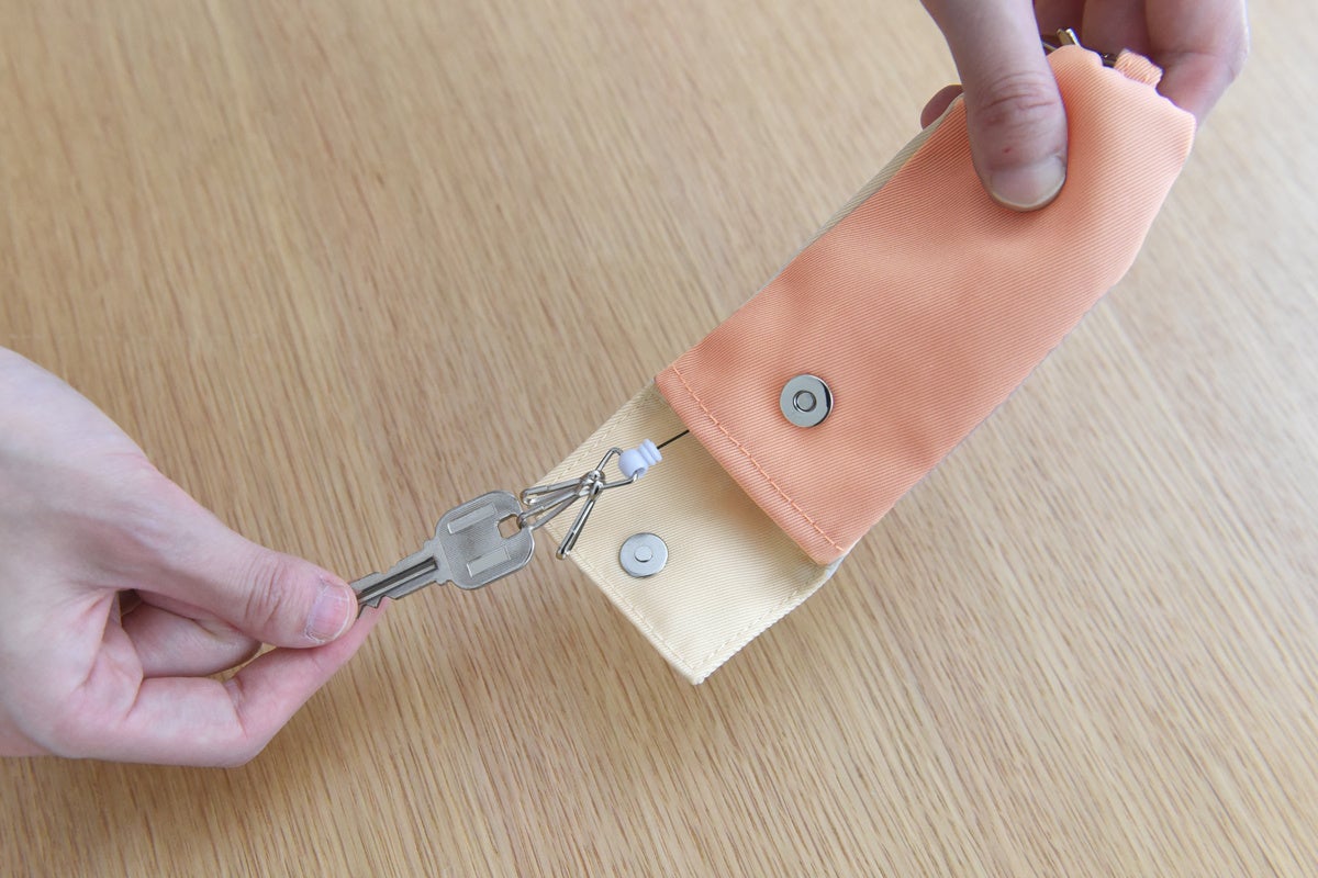 リールは60cmまで伸び、鍵を取り付けるフックは3個。約9cm×5cmまでの大きさの鍵を収納できます。