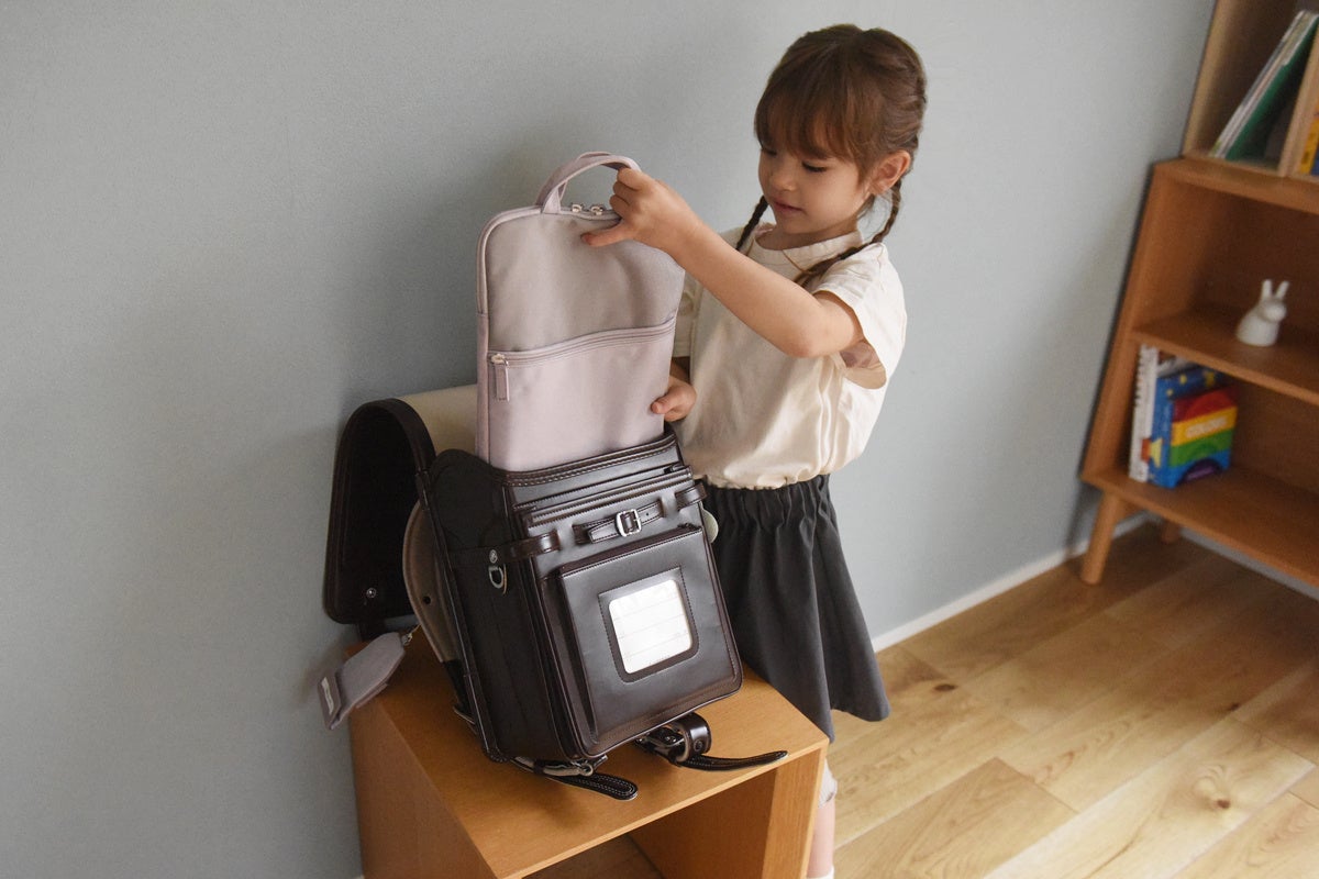 ランドセルの中にすっぽり収められるサイズ感でありながら、持ち手も付いているので、荷物が多い日は手で持つことも。