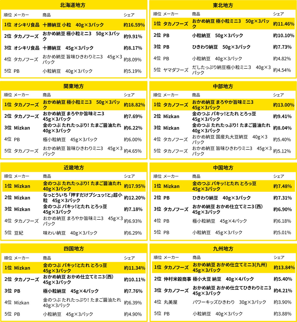 220万人のレシートデータから見る「買い物動向」調査 10月、全国・地方別の納豆売れ筋ランキング