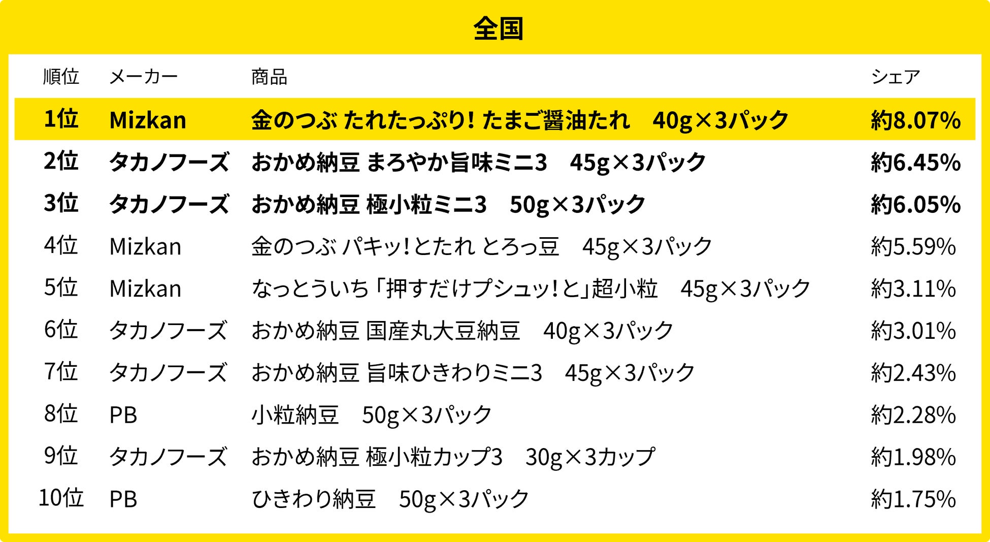 全国1位はたまご醤油たれの極小粒納豆、地方別1位は地方ならではの納豆も!