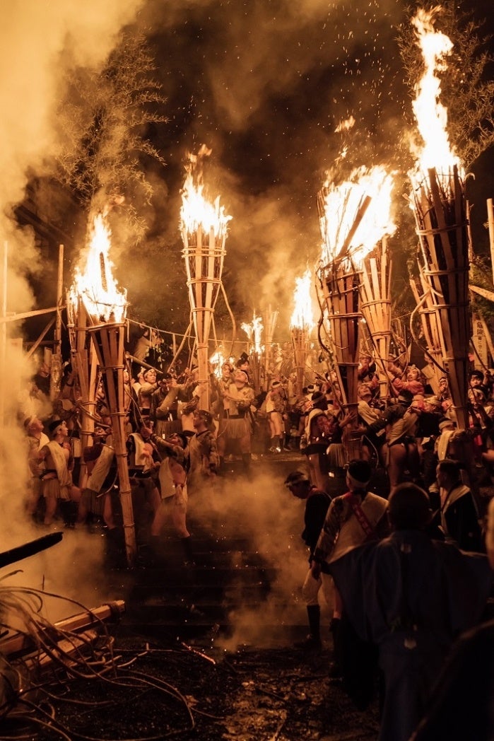 「鞍馬火祭」は平安時代、賀茂川の葦を束ねた篝火を焚いて、由岐大明神を内裏から鞍馬に迎えた様子を再現しているとされる。通常の見学ルートではなく、特別観覧スペースで勇壮な祭を間近でゆっくり観覧できる。(お弁当付き)