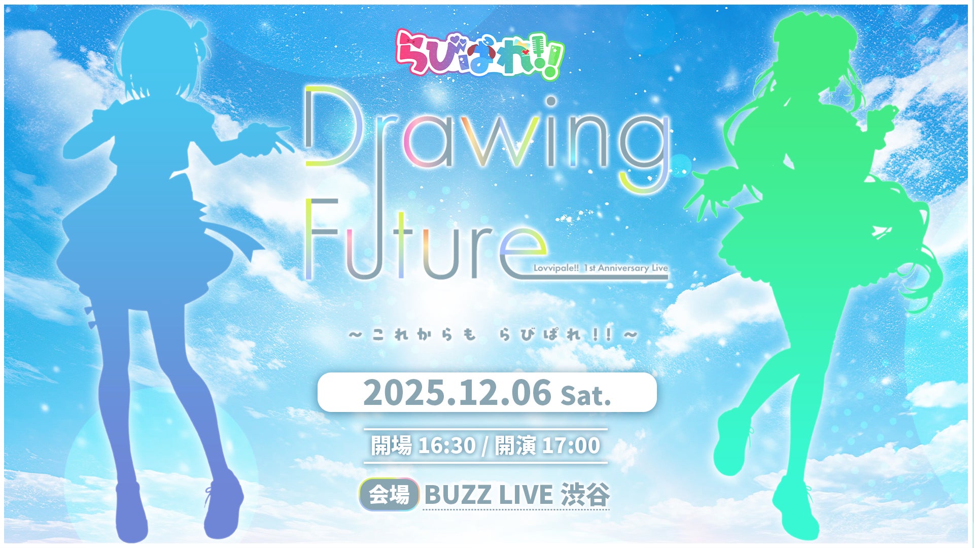 株式会社Blackbox(本社:東京都新宿区、代表取締役CEO:坂本龍優)が運営するVTuberプロダクション「ラブボックス」所属のアイドルVTuberグループ『らびぱれ!!』は、この度、結成1周年の節目を記念し、2025年12月6日(土)に『Lovvipale!! 1st Anniversary Live 「Drawing Future」~これからも らびぱれ!!~』を、Buzz Live 渋谷にて開催することを決定いたしました。