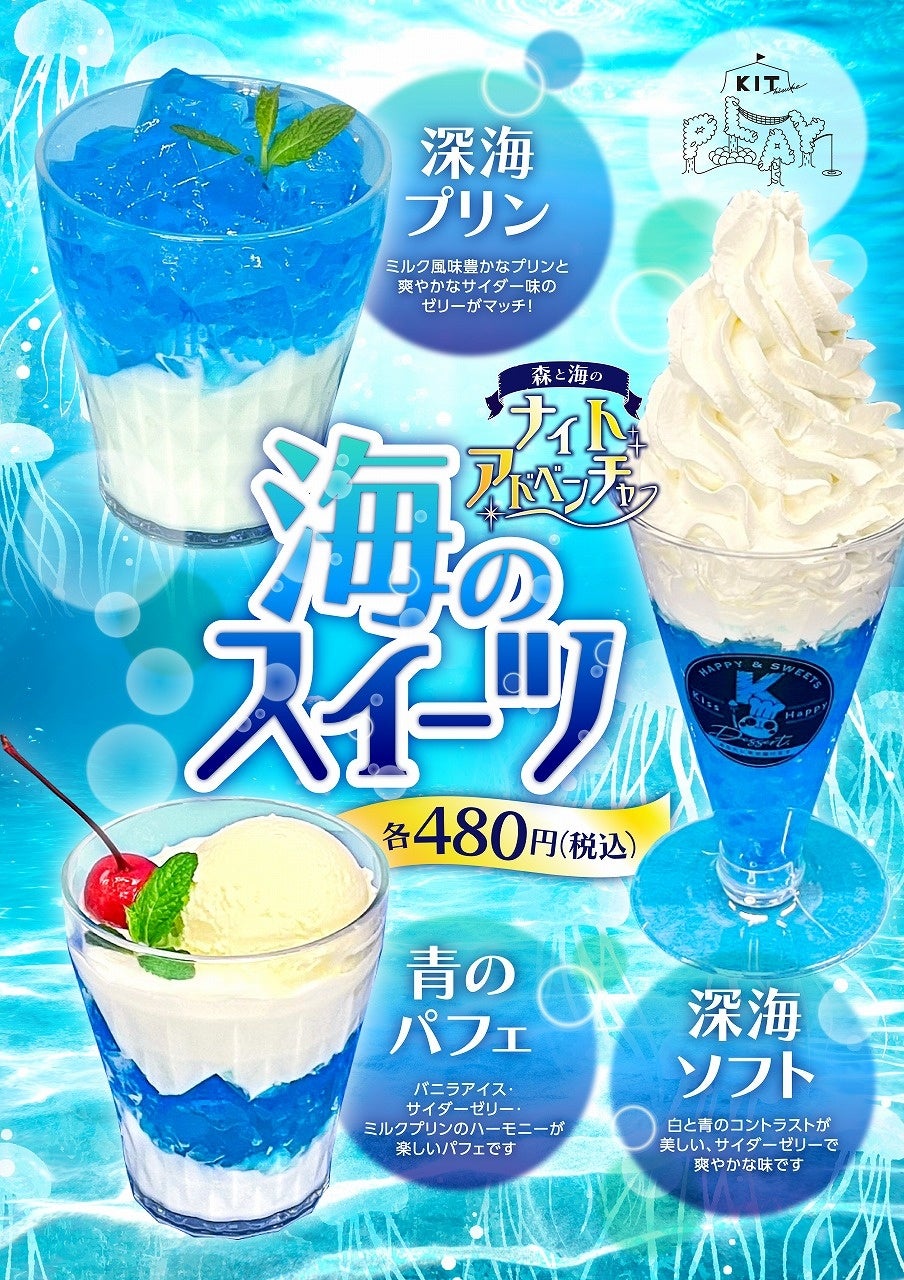 館内の「KIT Cafe」では、通常販売メニューに加えて、「ナイトアドベンチャー」 期間限定のオリジナルスイーツをご用意しています。