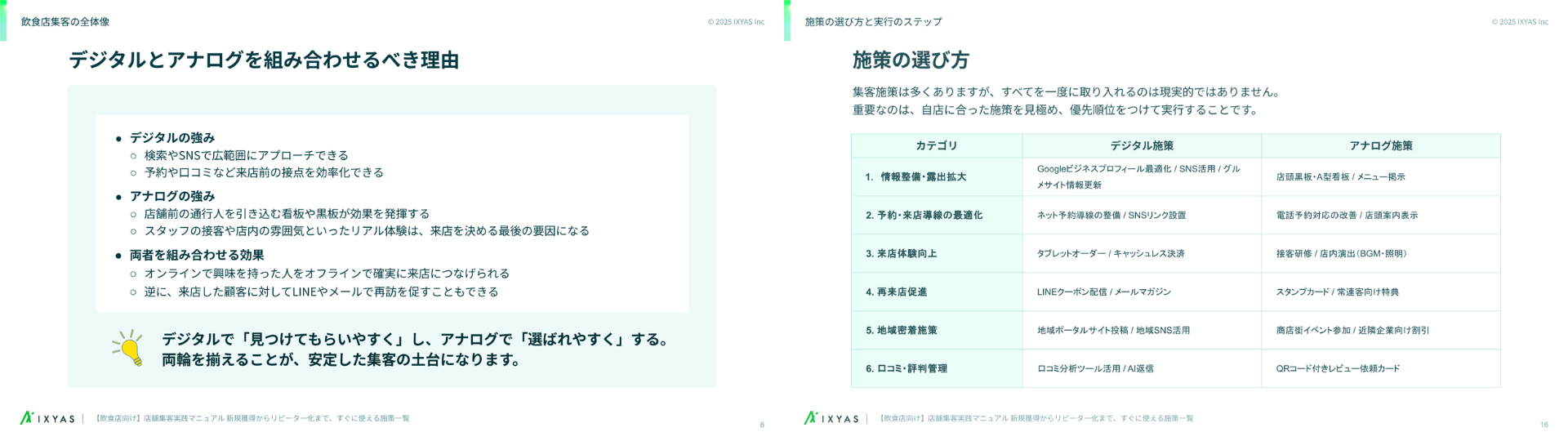 本資料は、飲食店の集客施策をデジタルとアナログの両面から体系的に整理したガイドです。