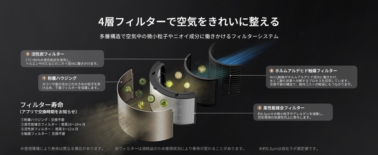 PM20 には、以下の4層構造フィルターシステムが搭載されています: