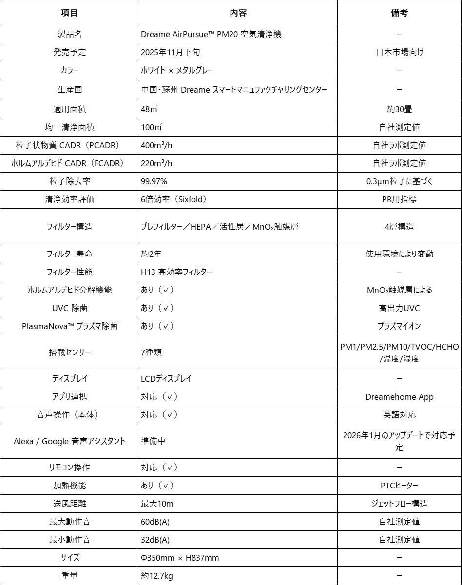 Dreame、日本市場向けに新世代スマート空気清浄機「AirPursue™ PM20」を正式発表