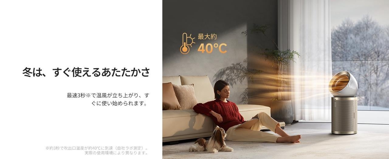 ジェットエンジンを模した高速気流構造を採用し、最大約10mのロングレンジ送風を実現。さらに、約3秒で立ち上がる高速加熱により、即時に快適な温度環境をつくり出します。