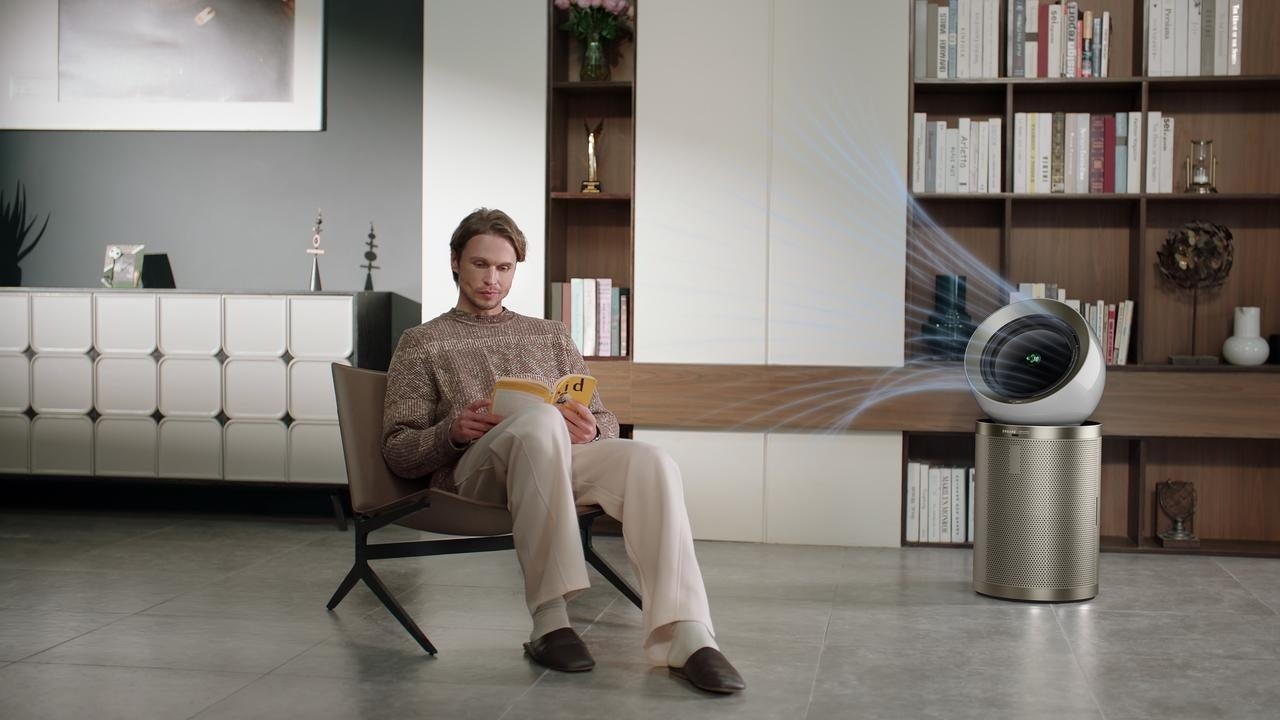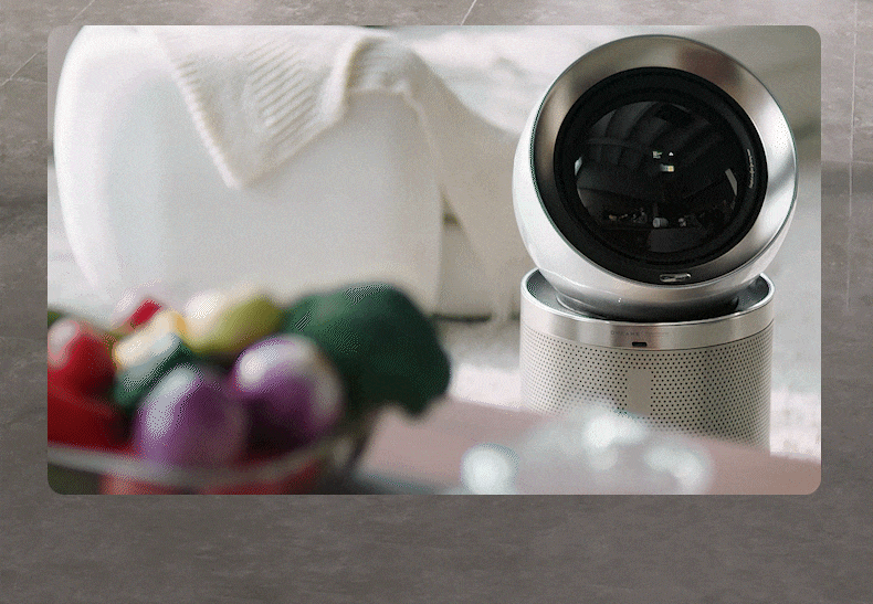 PM20 は、円柱型ボディ × 球体ヘッドという独自のデザイン言語を採用し、従来の空気清浄機が持つ角張ったイメージを大胆に覆しました。円柱のボディは安定感とシンプルさを、球体のトップは柔らかく浮遊するような印象を与え、まるで “宇宙飛行士のヘルメット”を思わせる存在感を放ちます。これにより、「テクノロジーのエレガンス」と呼べる新しい美しさが空間に宿ります。