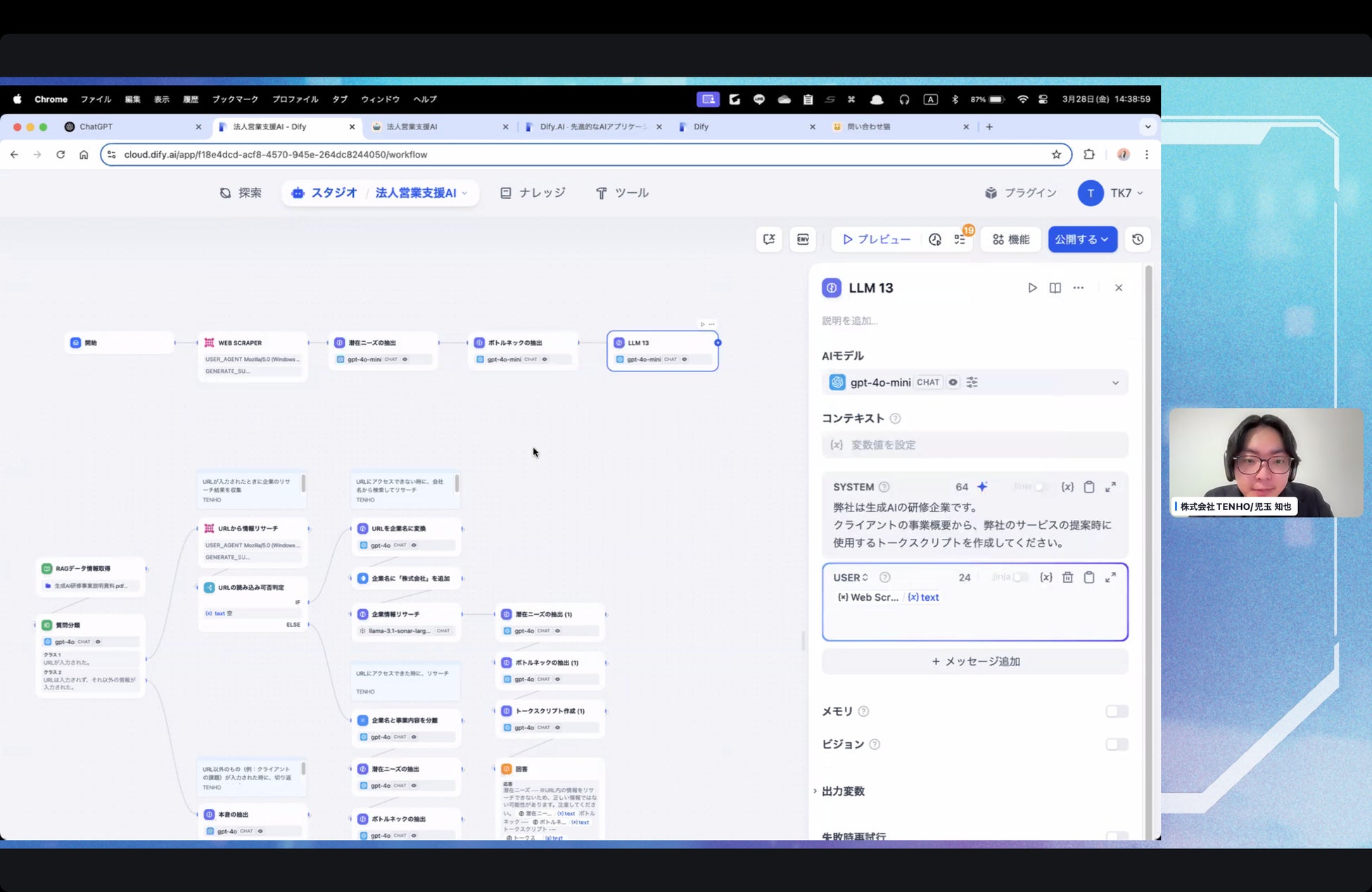 生成AIに関する研修・内製化支援事業を展開する株式会社TENHO(本社:東京都渋谷区、代表取締役:田村 允、以下「当社」)は、2025年3月24日より5日間開催されたLedge.ai主催の「AI勉強会」に登壇し、「Difyを使ったツール作成演習」をテーマに実践的なAIツール開発のノウハウを提供しました。