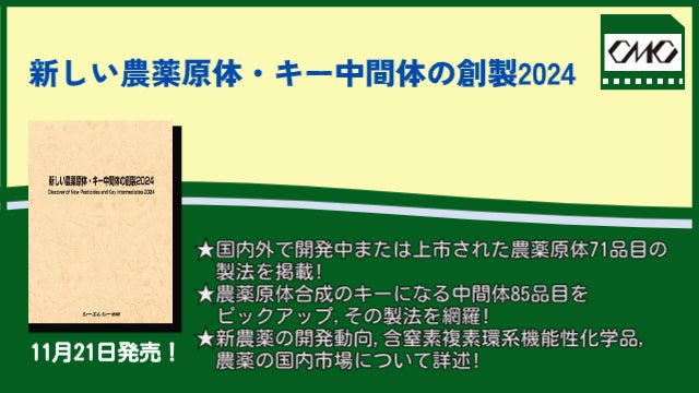 農薬原体71品目と農薬原体合成のキー中間体85品目の製法を網羅した農薬創製の決定版『新しい農薬原体・キー中間体の創製2024』が11月21日に発売!
