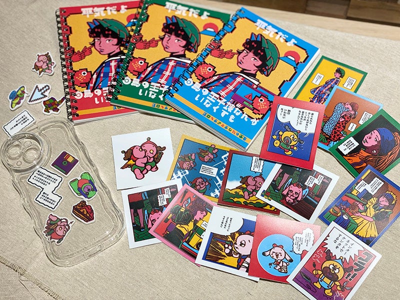 さらに、会場では2つのワークショップを開催します。1つ目は、複数のイラストから好みの作品を選び、世界に一つだけのオリジナル画集を制作できるプログラムです。2つ目は、さまざまなアクリルパーツを自由に選んで封入し、自分だけの“シャカシャカスマホケース”を作れるワークショップで、作品に動きと遊び心を加えることができます。