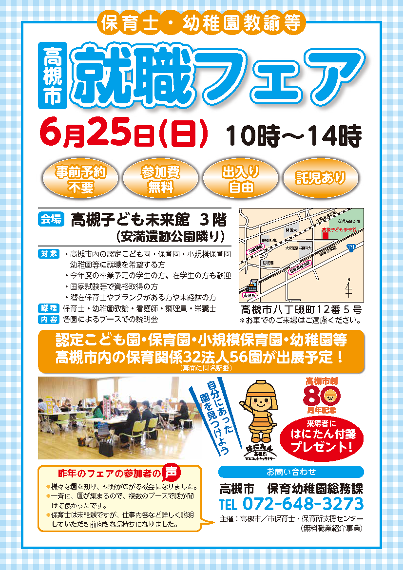 高槻市で保育士や幼稚園教諭を募集中の56園が集結して就職説明会
