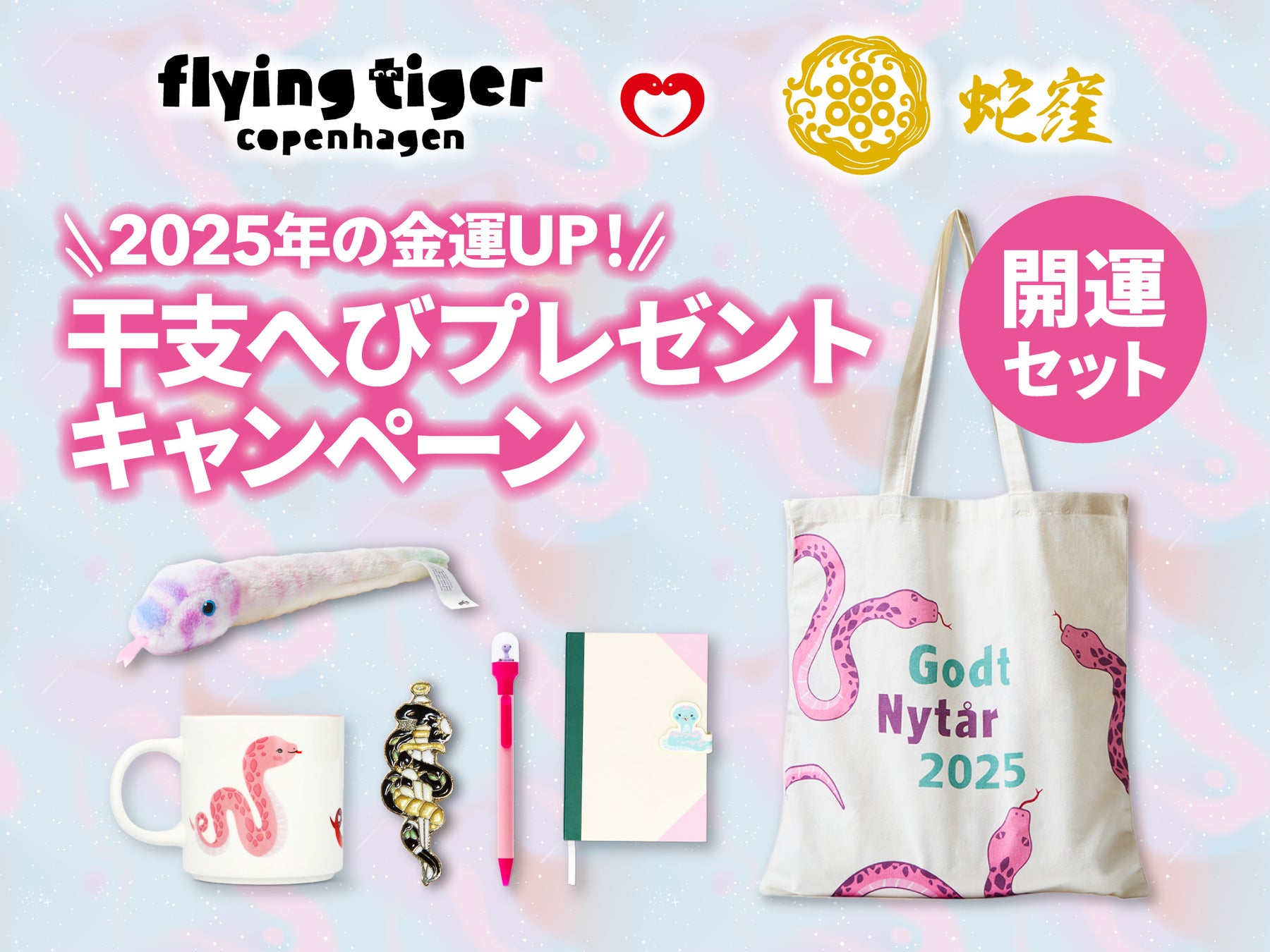 シーズンを最大限に楽しむ“きっかけ”をご提供する北欧デンマーク発の雑貨ストア Flying Tiger Copenhagen(運営:Zebra Japan 株式会社/本社:東京都渋谷区神宮前/代表取締役:松山恭子)(以降「フライングタイガー」)は、11月21日(木)に全国の店舗にて、2025年の干支である「へび」をモチーフとした商品32アイテムを発売しました。