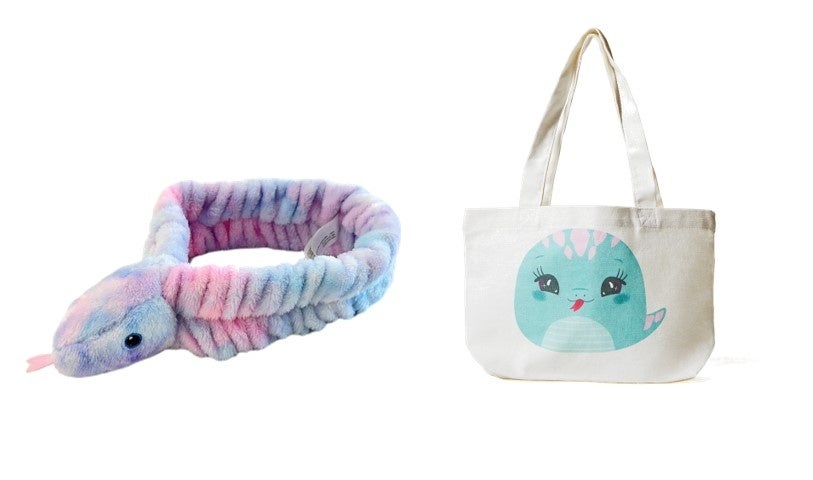 プレゼント内容:蛇窪神社監修・フライングタイガーのへびグッズ6種の入った『開運セット』を合計5名様にプレゼント!(トートバッグ / マグ / ぬいぐるみ / ボールペン / ブローチ / ノート)