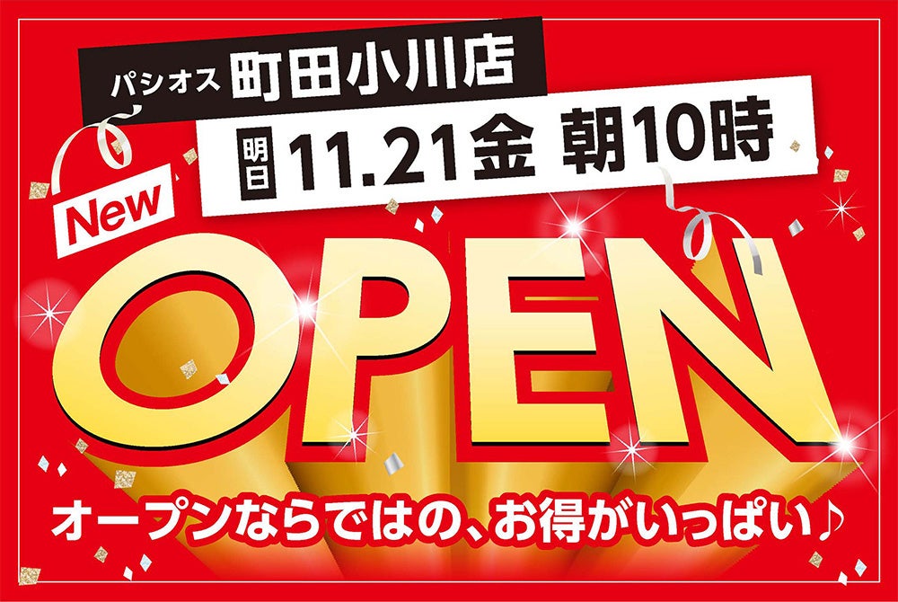 「パシオス 町田小川店」は、東京都町田市の都道141号線(町田街道)沿いに立地する「スーパー三和小川店」2階に、11月21日(金)オープンいたします。