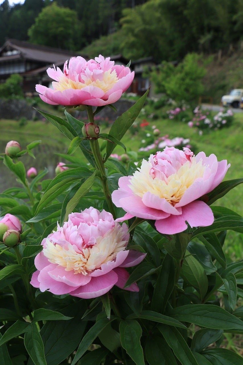 岐阜県高山市丹生川町内の北方から法力にかけての道は、「シャクヤク街道」と呼ばれ、5月中旬頃から咲き始めた鮮やかで豪華なシャクヤクの花が、街道を彩っています。