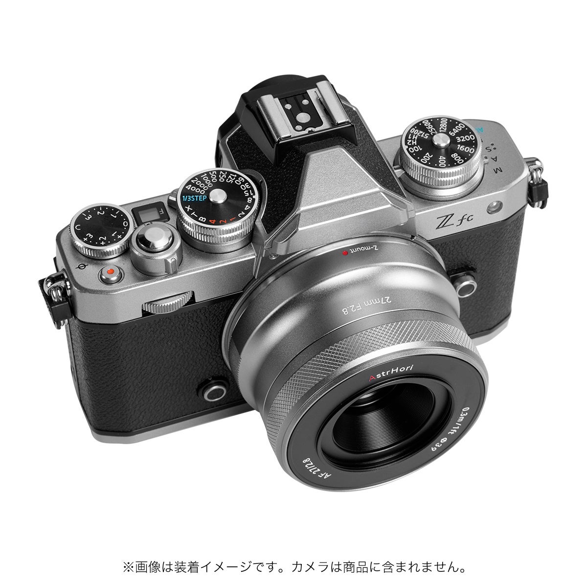 ニコンZマウント用APS-C単焦点レンズ。レトロな軽量金属ボディで、日常や旅行に最適。27mm焦点距離、静音AF、瞳AF、動画対応。最短30cmでクローズアップ撮影も可能。F2.8の明るさで暗所にも強い。USB端子でファームウェア更新可能。