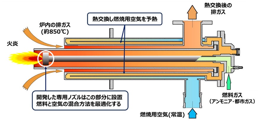 国内初!熱交換器内蔵排熱回収型バーナにおいてアンモニア混焼率0~100%での安定燃焼に成功