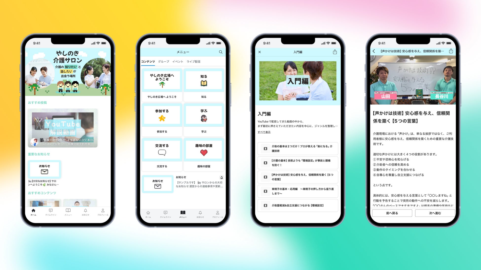 技術の向上だけでなく、心の負担を軽くし、「もっと喜んでもらえる介護がしたい」という想いを支えるコミュニティです。