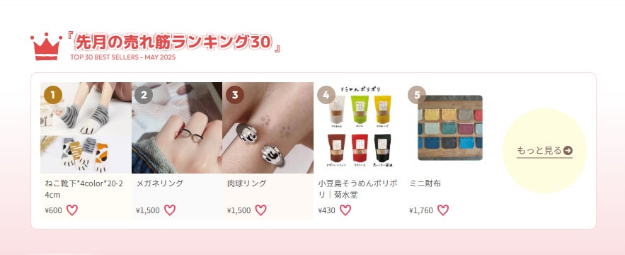あるるは職人さんの作品系アイテムを扱うモールで、そこに集まる方もそういったアイテムに興味関心のある人たち。 そんな人たちに今人気のアイテム(商品)はこれなんだ!がわかるランキングになっています。