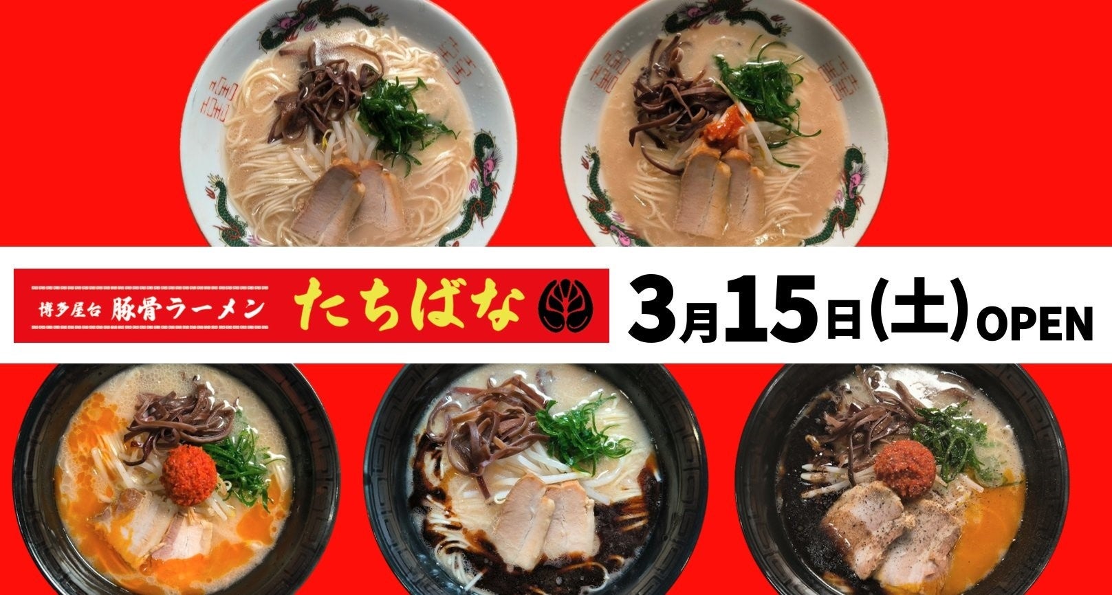 【tekuteながまち】博多屋台 豚骨ラーメン たちばな 3/15(土)OPEN!