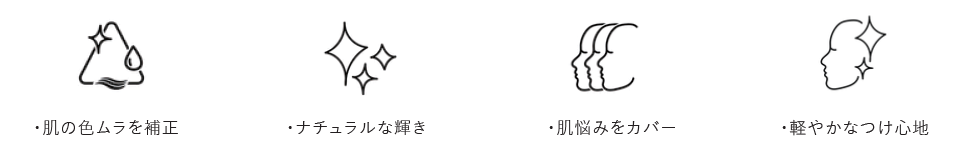 素肌感を残しながら輝きをプラス。ソフトフォーカス効果で肌のトーンを整え、気になる肌悩みをぼかします。