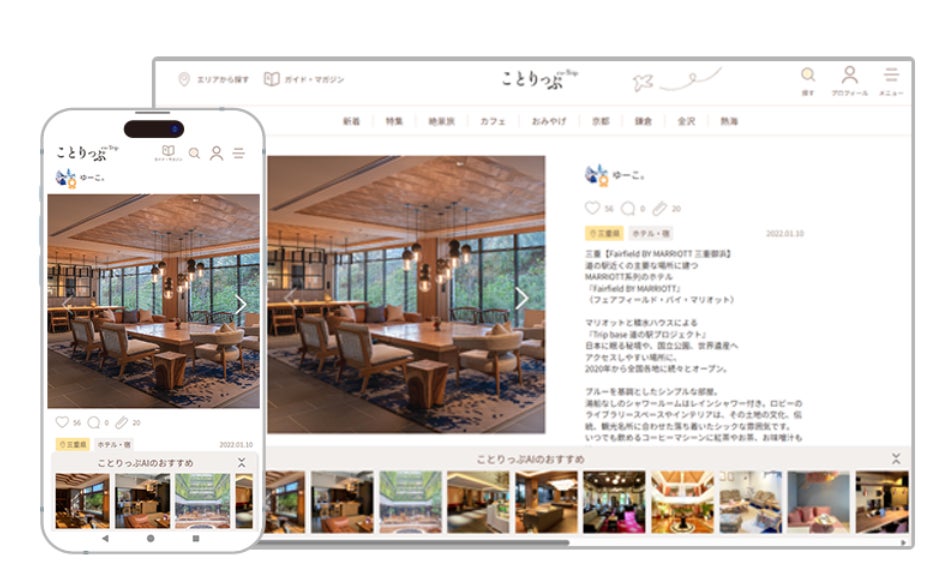 ICTソリューション事業を手掛けるテックファーム株式会社(東京都新宿区、代表取締役社長 千原信悟、以下:テックファーム)は、株式会社昭文社が運営する旅メディア「ことりっぷWEB」において、AIを活用したユーザー投稿のレコメンド機能の実装支援を行いました。サイトの世界観やデザインの統一感を損なうことなく、ユーザーの閲覧体験の向上・投稿回遊の自然な促進を目指しています。