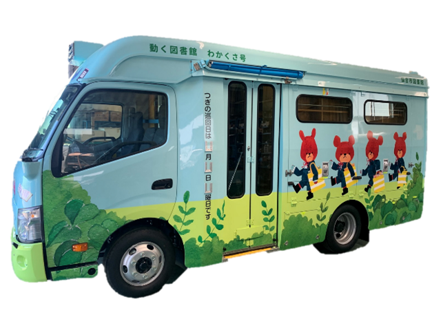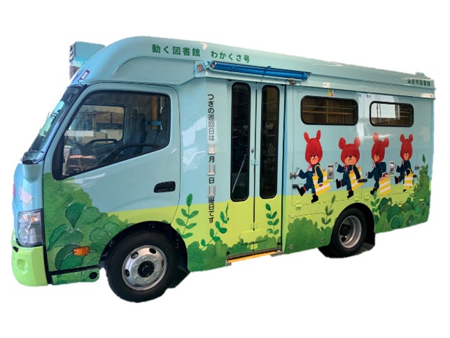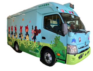 ※仙台市図書館の移動図書館車は「わかくさ号」を含む3台があり、市内77か所を2週間ごとに巡回し、本の貸出などを行っています。「新わかくさ号」は、9月下旬より運行開始予定です。