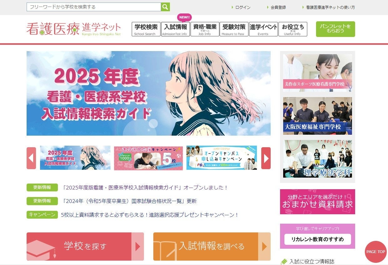 全国にある看護・医療系学校の入試情報を検索できる! 看護医療進学ネットに「看護・医療系学校入試情報検索ガイド」機能追加 好評公開中!!