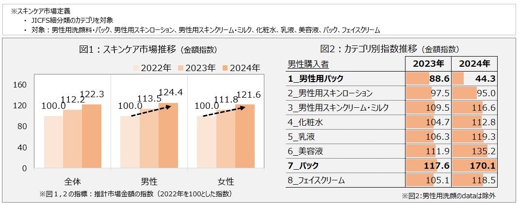 図2:男性が購入する「パック」の需要が増加傾向も、「男性用パック」は縮小