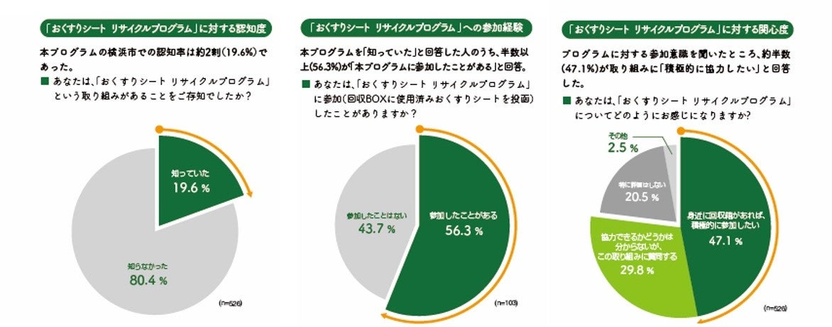 ・ドラッグストアに加え、地域密着型の調剤薬局や公共施設においても回収を行ったことにより、地域の人々の間でのコミュニケーションを通じて本プログラムが浸透した。実際に、横浜市在住者を対象に当社が本年9月に実施した調査の結果、本プログラムの認知率は19.6%を記録し、そのうち56.3%が「本プログラムに参加したことがある」と回答するなど、横浜市内の一部地域における実施にも関わらず、取り組みを広めることができた。