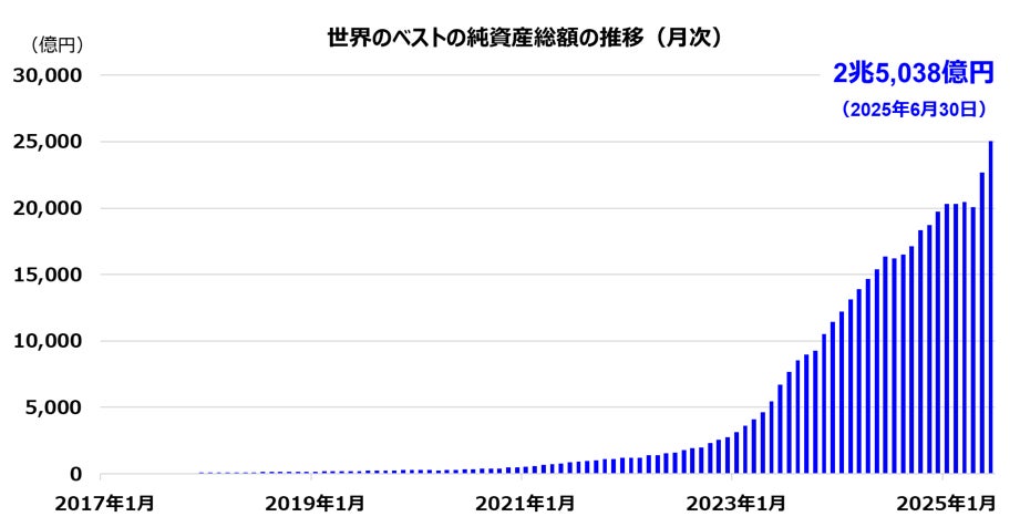 インベスコ・アセット・マネジメント株式会社(代表取締役社長兼CEO:佐藤秀樹、所在地:東京都港区)は同社が運用する公募追加型投資信託「世界のベスト」*1の2025年6月30日の運用資産額が、6ファンド合計で2兆5,000億円に到達し、2兆5,038億円になったことを発表いたします*2。