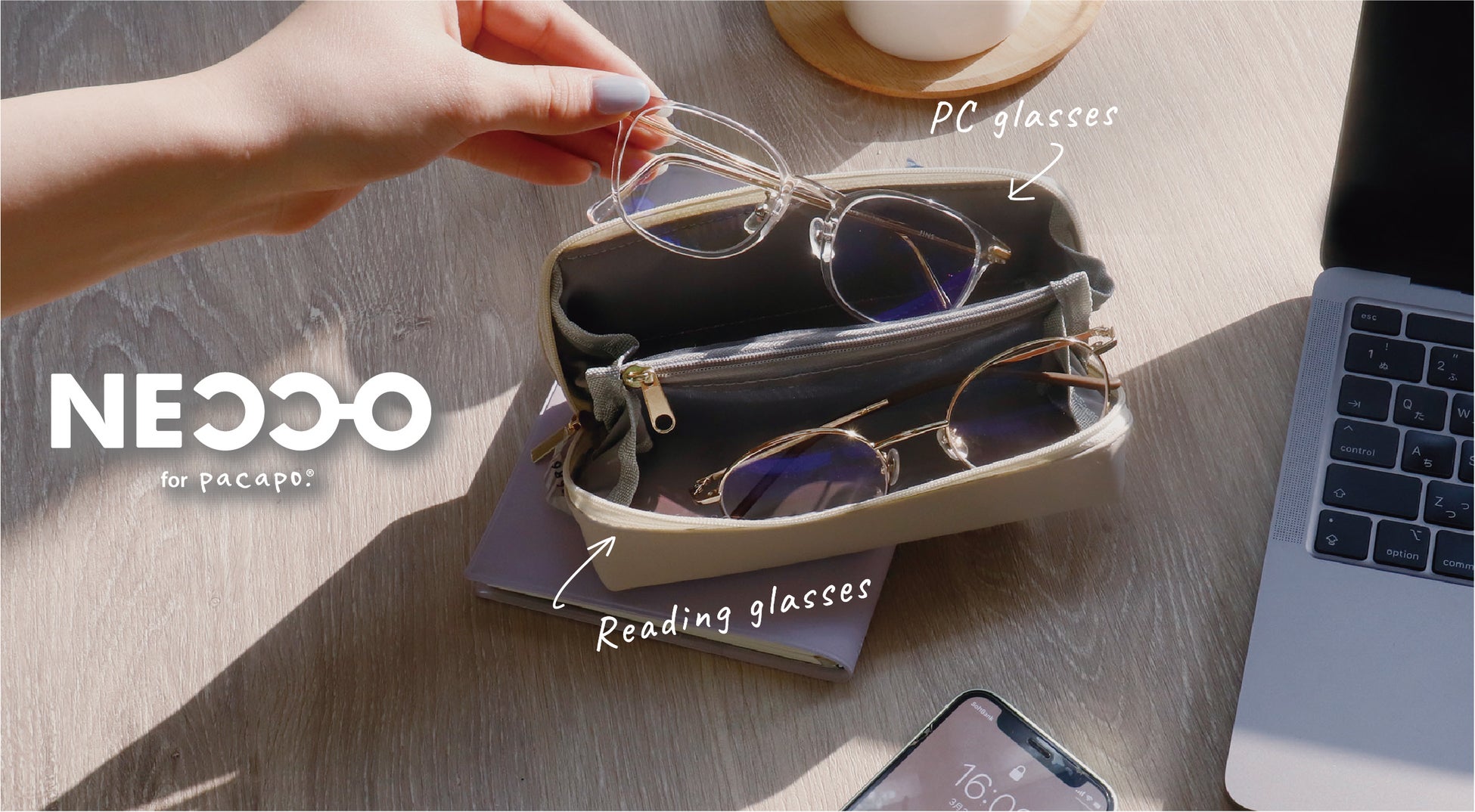 そんな新しい生活スタイルに便利なのが、メガネが2個収納できるポーチ【NECCO(ねっ子)】なんです。