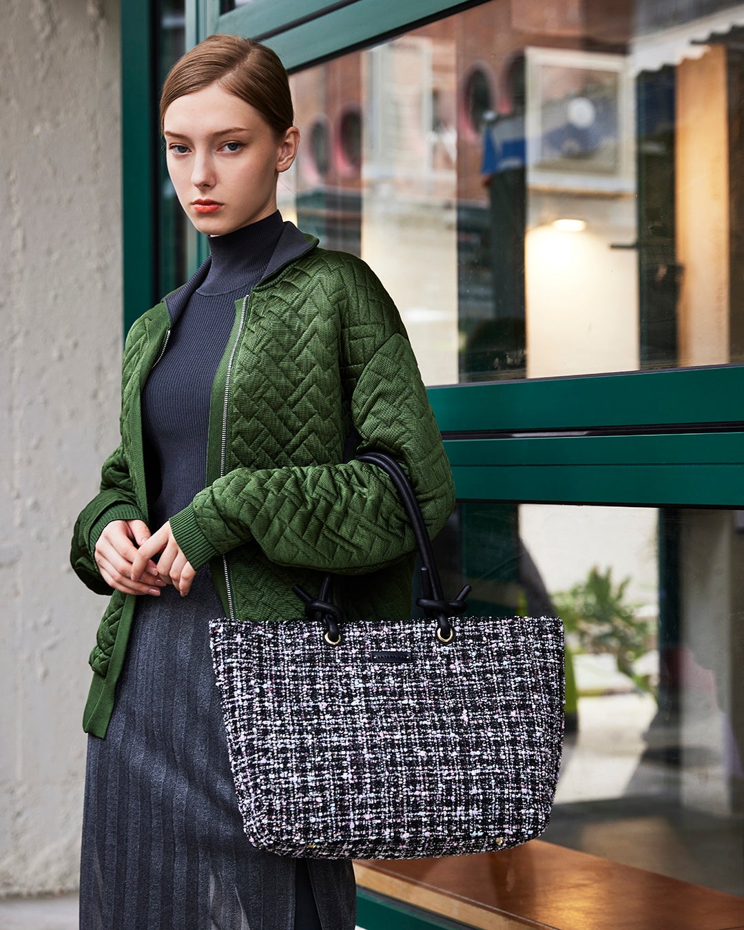 | TWEED(ツイード) [ミディアム]品番:MB22FA71C6 価格:¥31,900(税込) サイズ:W: 33 H: 20 D:12 cm カラー:KHAKI(カーキ)、NERO MISTO(ブラックミックス) [ラージ]品番:MB22FA71D2 価格:¥37,400(税込) サイズ:W: 45 H: 28 D:12 cm カラー:KHAKI(カーキ)、NERO MISTO(ブラックミックス) |