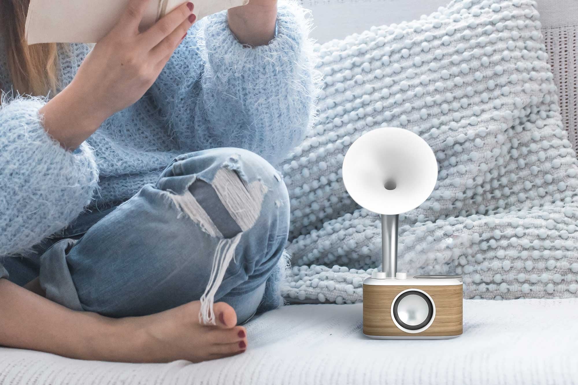 さらに、ユニークな形状のスピーカーはグラファイトグレーとホワイトのカラーをご用意しており、思いの外どんなインテリアにも馴染みます。