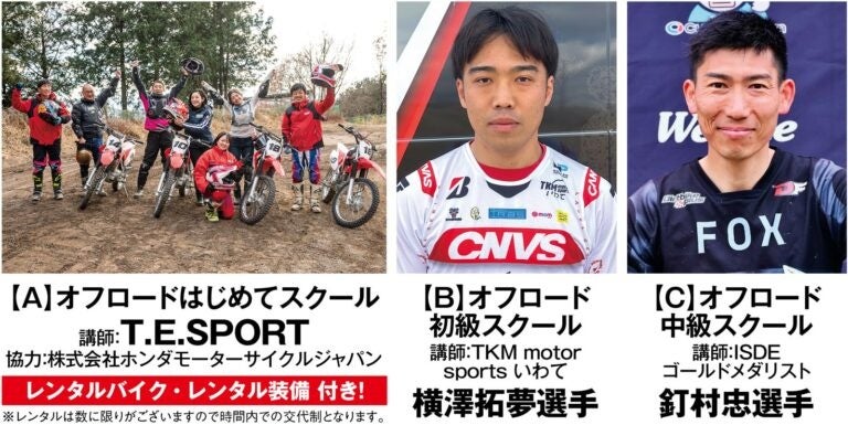レンタルバイク&装具付き。オフロード未経験者やバイク初心者でも安心して受講できる特別講座。