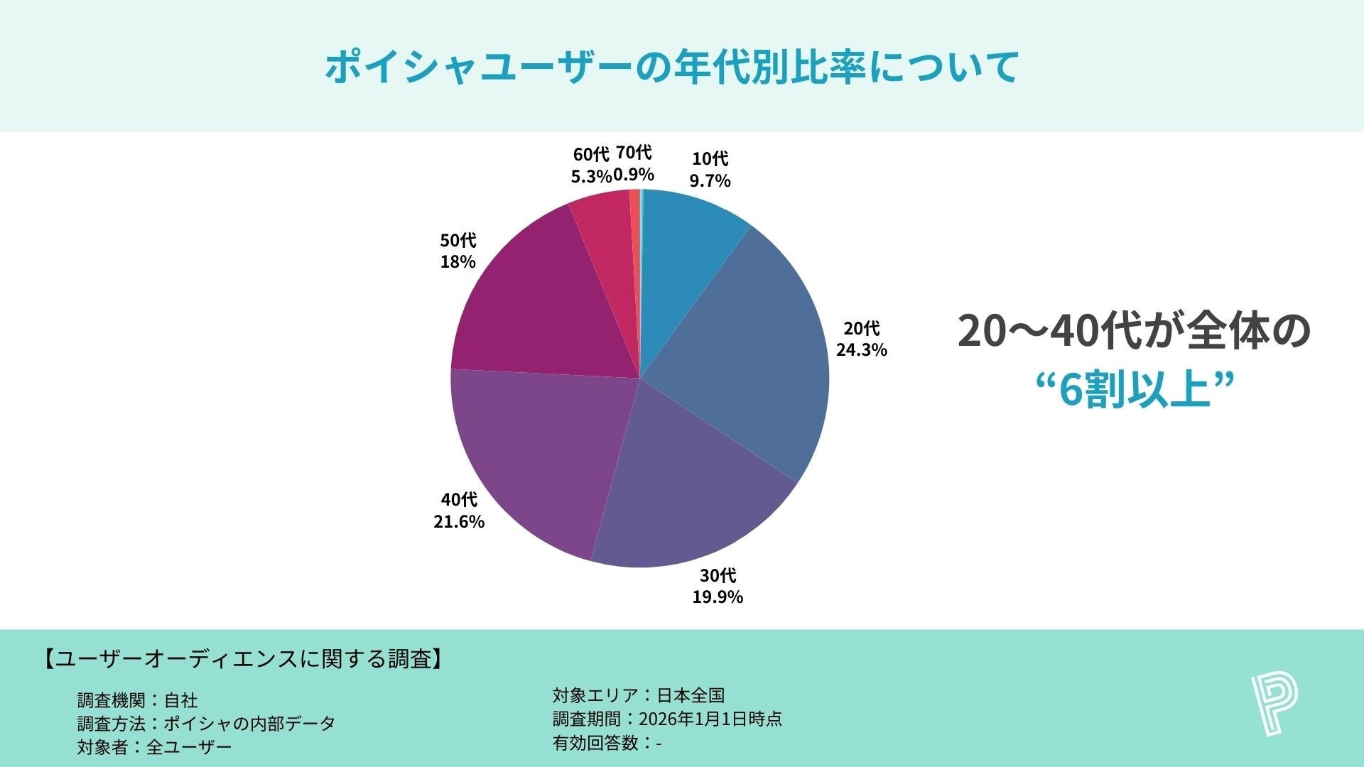 本調査では、性別・年代構成を中心にユーザー属性を分析し、ポイシャがどのような層に日常的に利用されているのかを可視化しています。