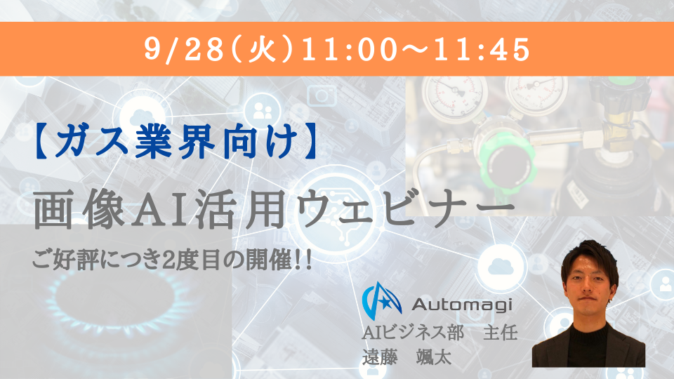 Automagi株式会社は9月28日(火)に、【ガス業界向け】の画像AI活用をテーマにオンラインセミナーを開催いたします。