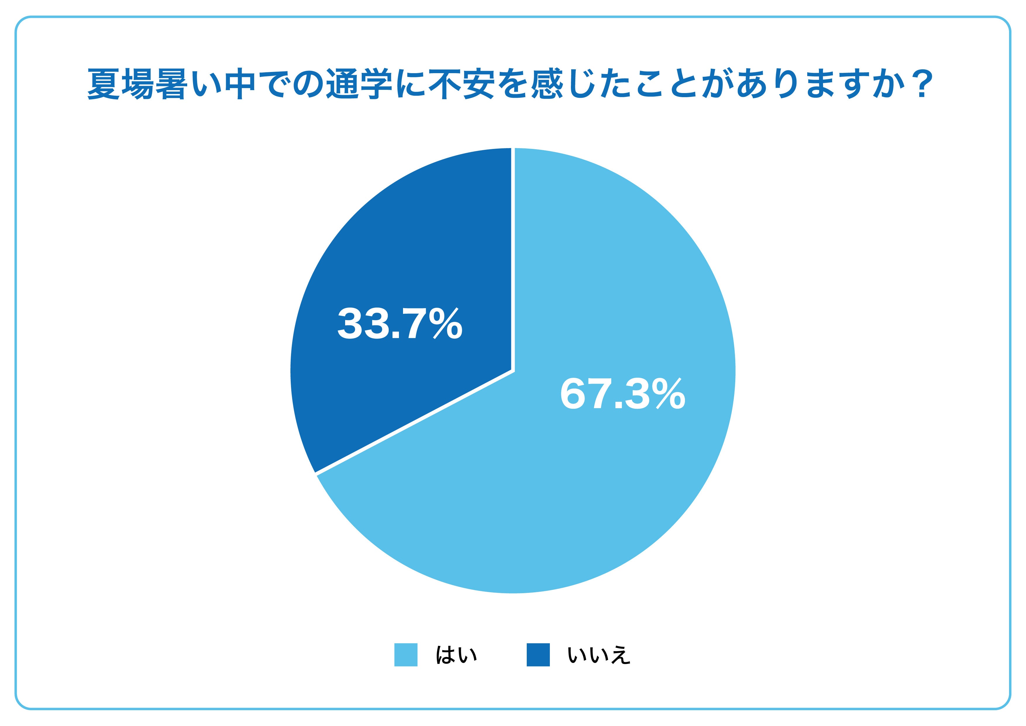 1.お子様の夏場暑い中での通学に不安を感じたことがある人が67.3%ということが分かった。お子様に対する熱中症対策に興味関心が高くなっていると推測。