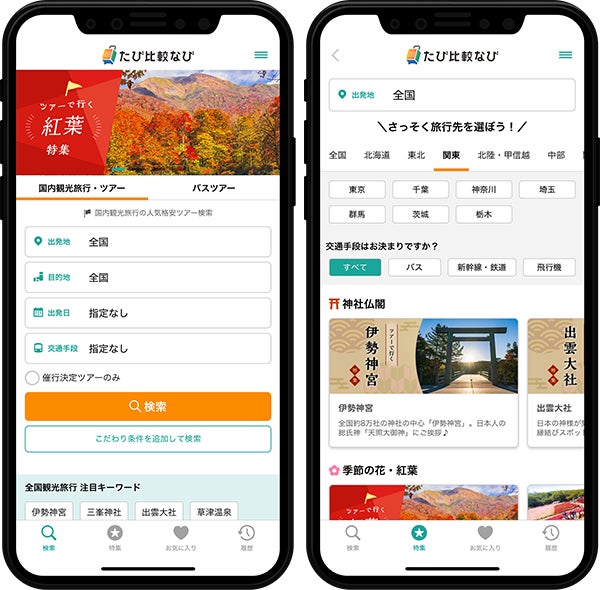 国内観光旅行・ツアー比較サイト「たび比較なび」、アプリの提供を開始 ~「履歴・お気に入り」「出発地固定」機能で、スマートなツアー探しをサポート~