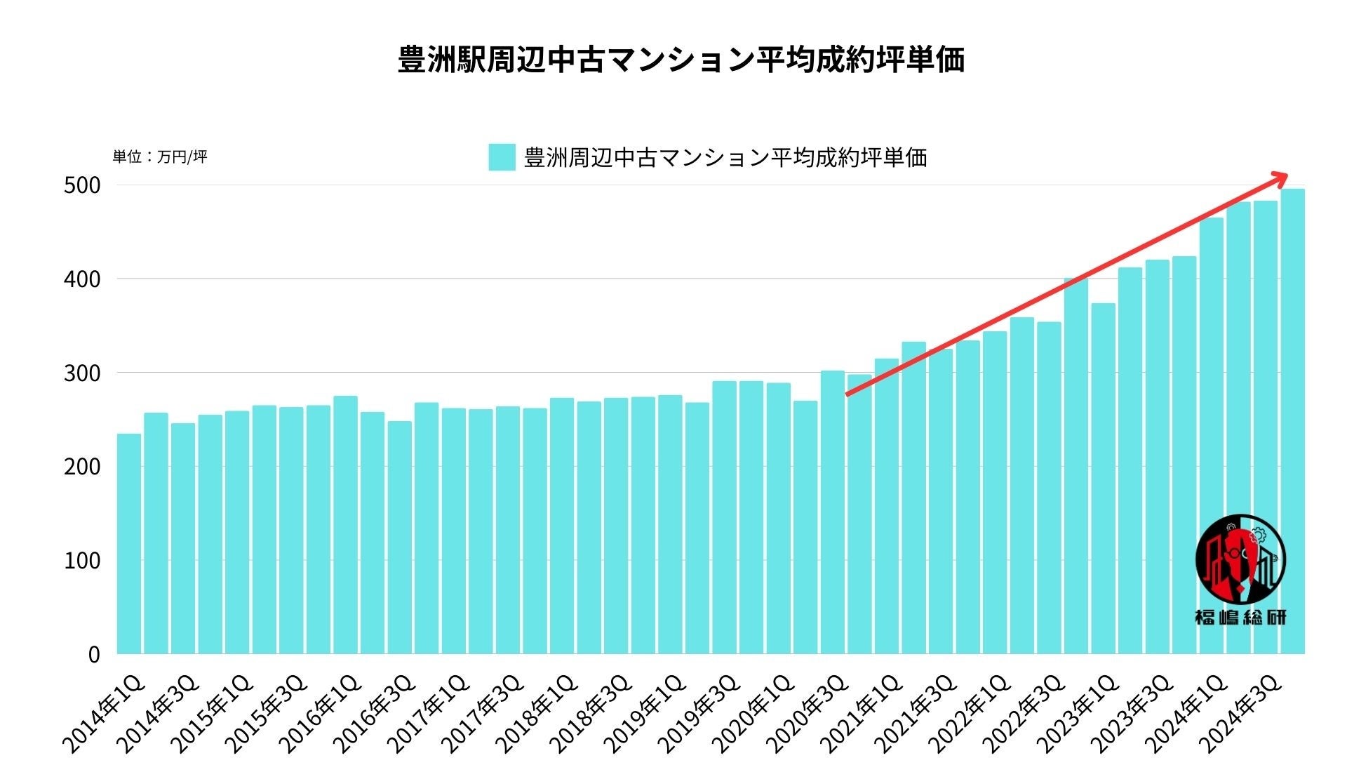 グラフ2:豊洲駅周辺の中古マンション成約坪単価推移