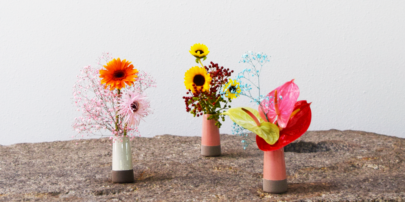 新商品は、いけばな「草月流」の監修により、季節の花を使用した鮮やかな色合いや、いけばなの技法を活かした独自のデザインが特徴的です。花瓶とセットで飾ることができ、誰でも簡単に飾れるようデザインされています。