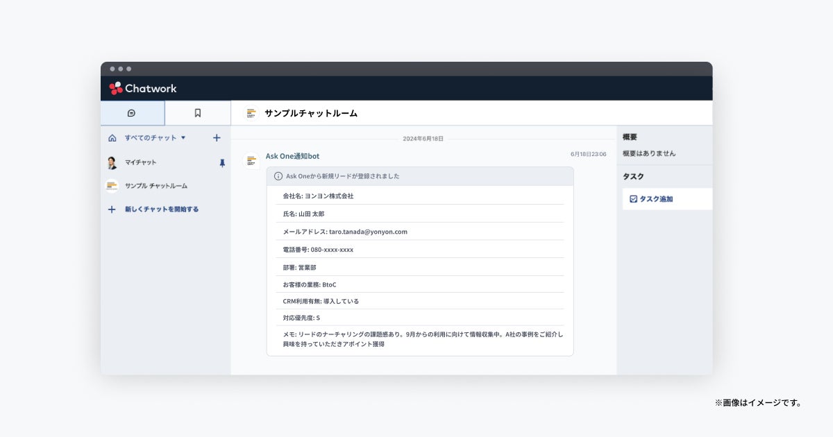 「Ask One」がビジネスチャット「Chatwork」とAPI連携し、顧客ごとに最適化なアプローチを実現