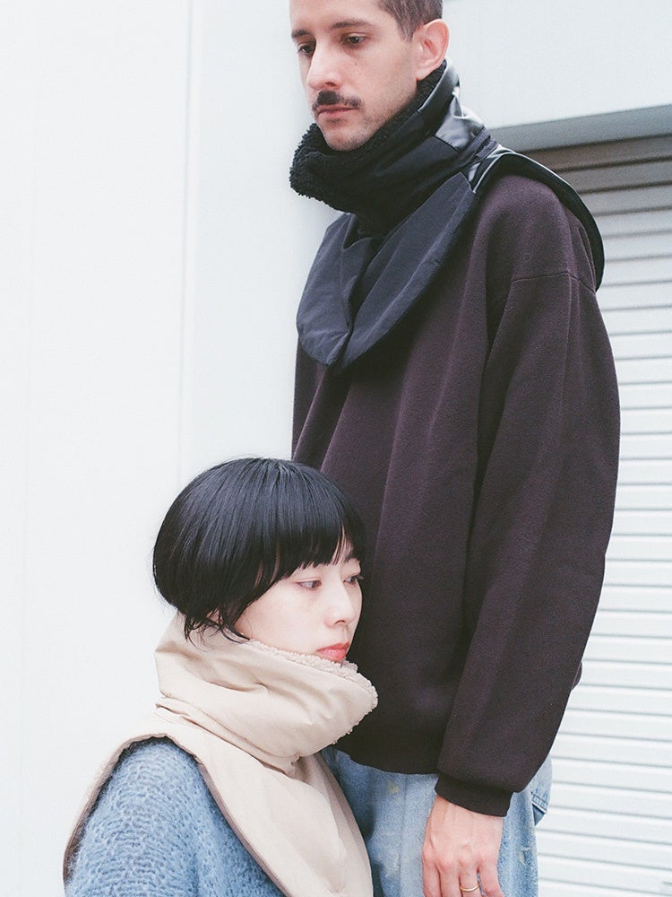 スポーティーな印象のネックウォーマーをモードな雰囲気に整え、秋冬のファッションアイテムとしてコーディネートも自由に楽しめるアイテムです。