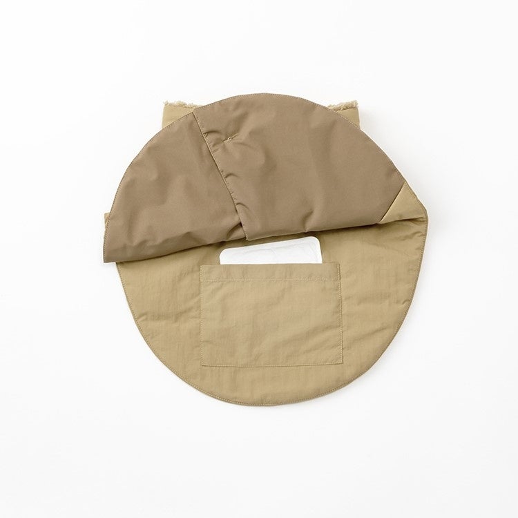 首周りはしっかり包み込み、背面の内側にはカイロポケットを装備。寒い日のお出かけでも、快適に過ごせる防寒機能が備わっています。